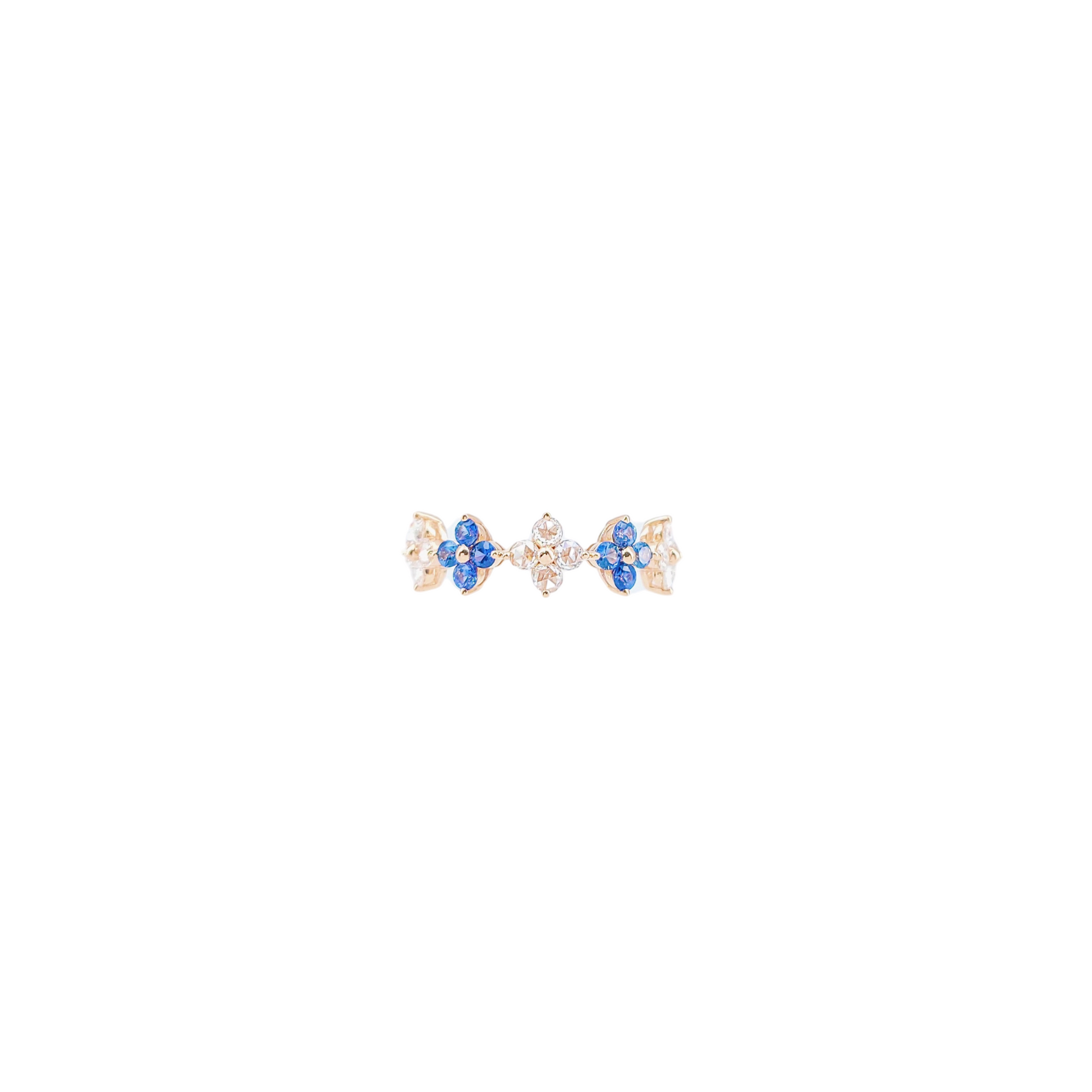 Blue Sapphire Flowers Diamond Ring-WK4067