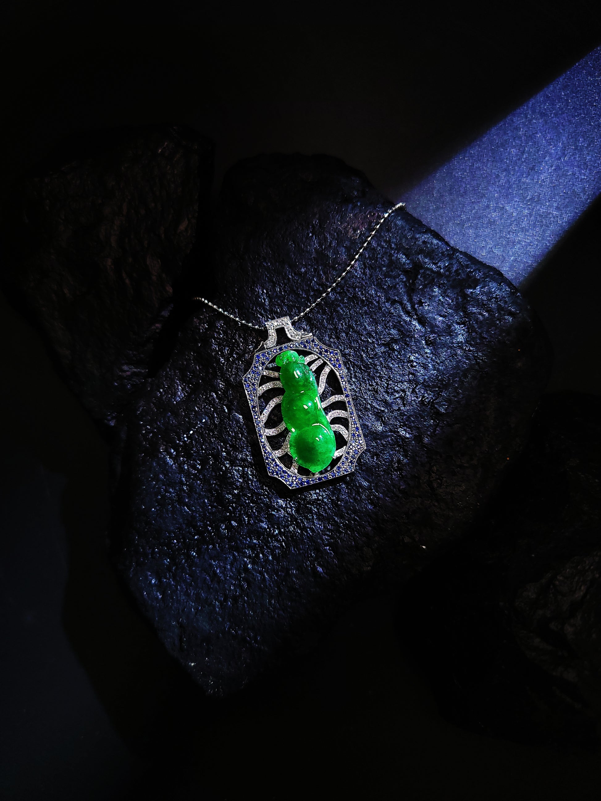 Fei Cui Blue Sapphire Diamond Pendant-WEO00002227