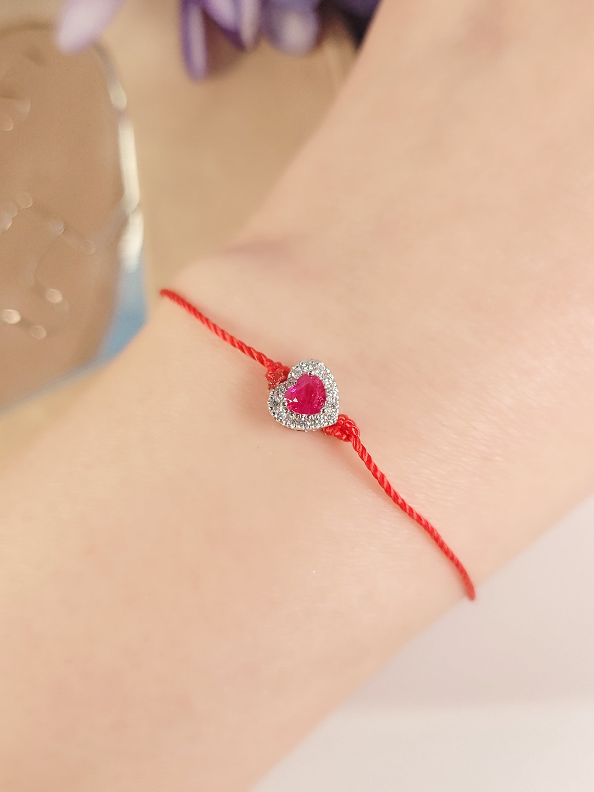 心形紅寶石鑽石紅繩手鏈