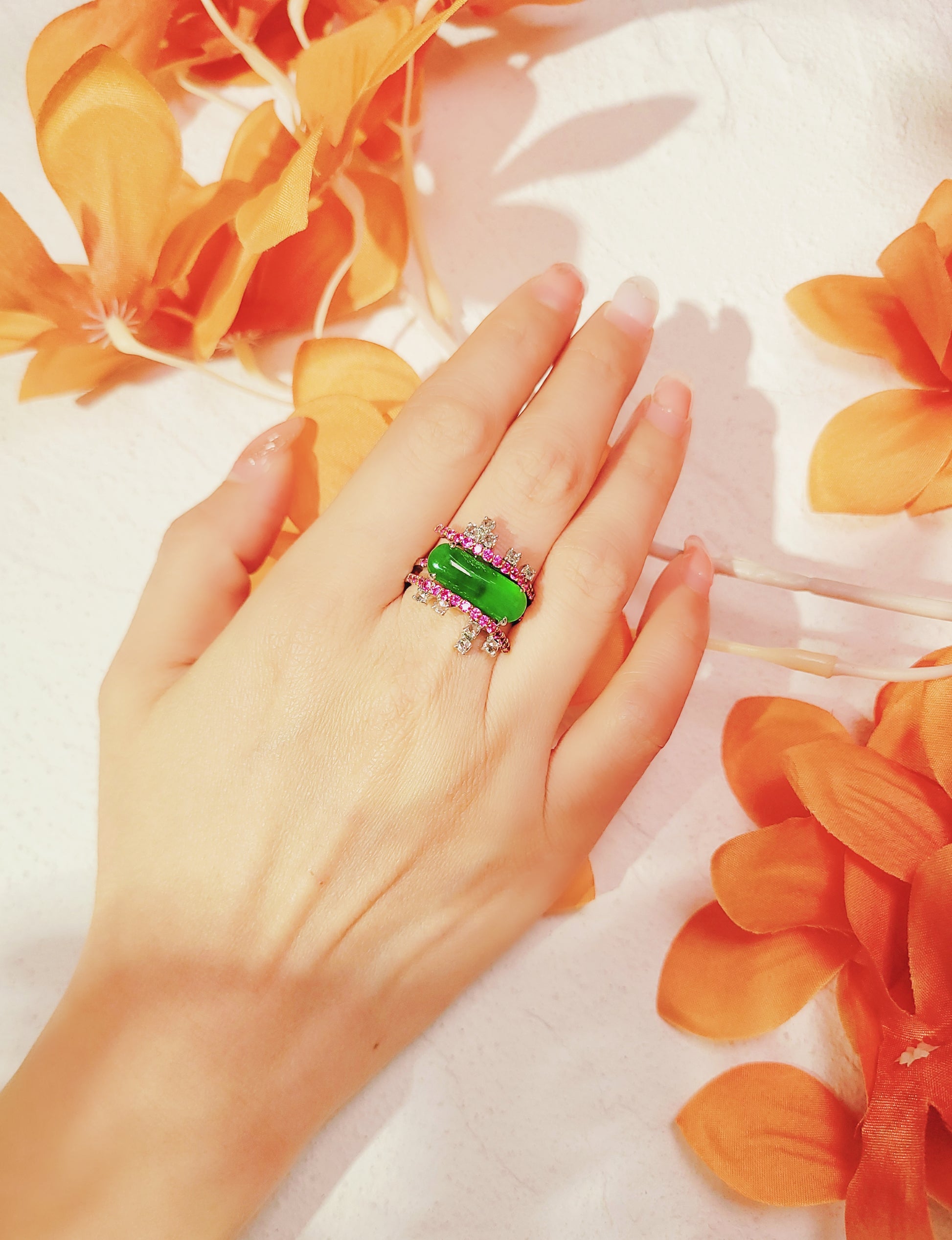 粉紅藍寶翡翠鑽石戒指