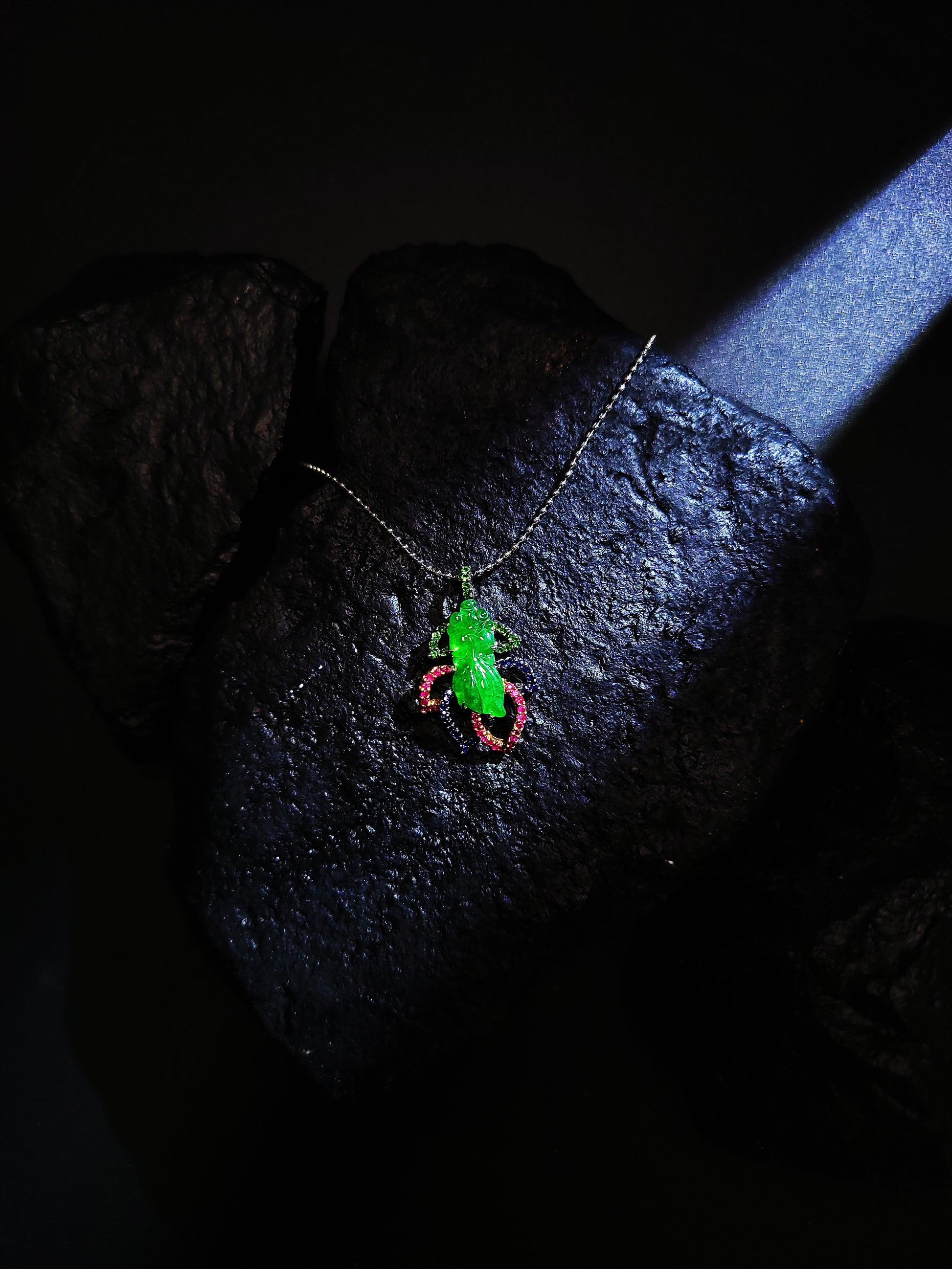 Ruby, Blue Sapphire Fei Cui Pendant-WEO00002651